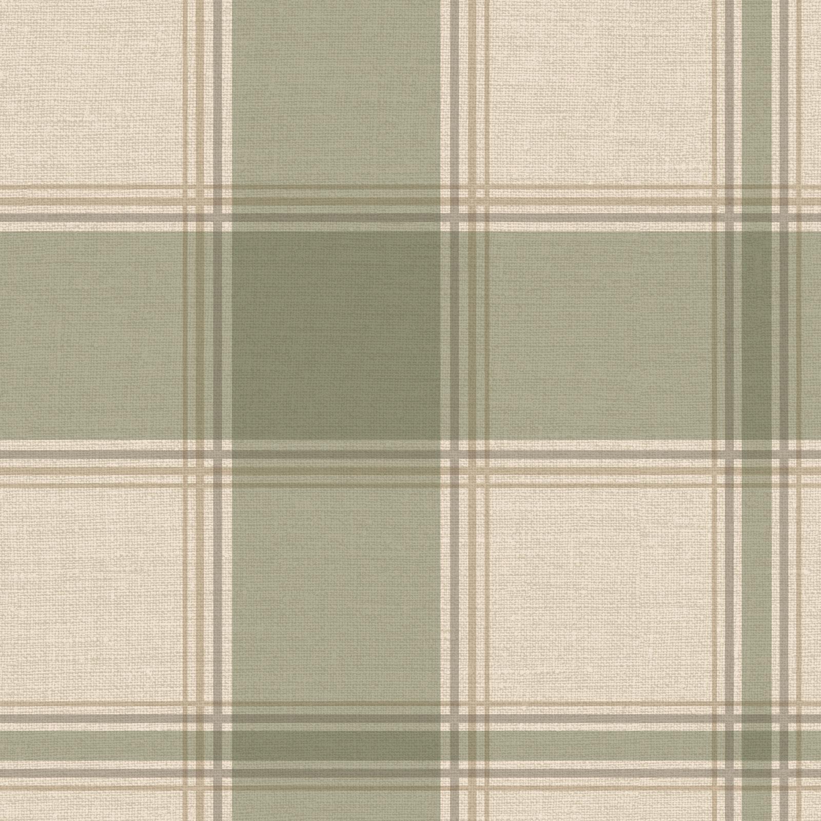 Belgravia Carmella Check Wallpaper Tartan Textured Vinyl Hessian Green 7159