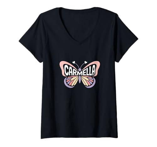 Women's Carmella Butterfly - Personalized Cute Name Word Art V-Neck T-Shirt