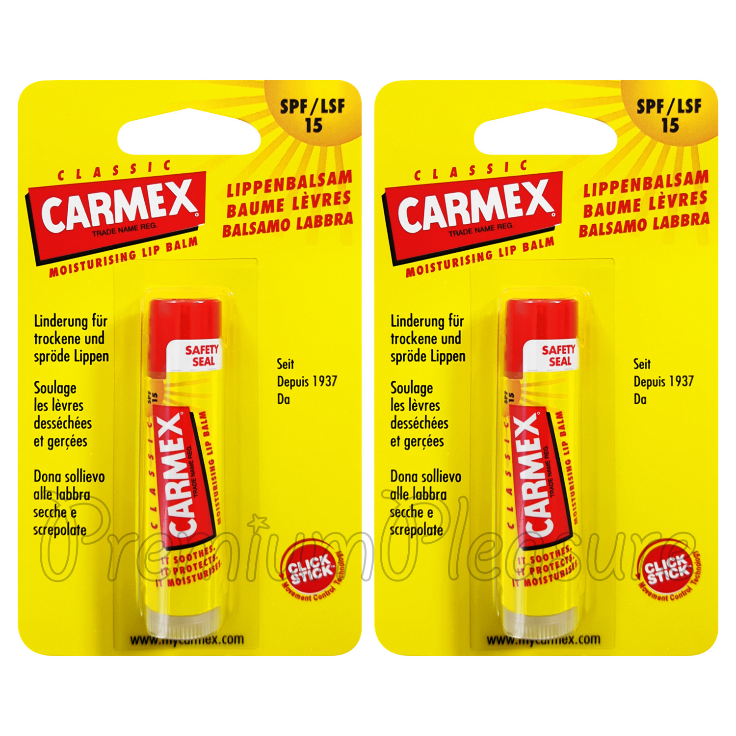 2 x Carmex Classic Click Stick Lip balm SPF15 Moisturising 4.9ml/0.16oz Made USA
