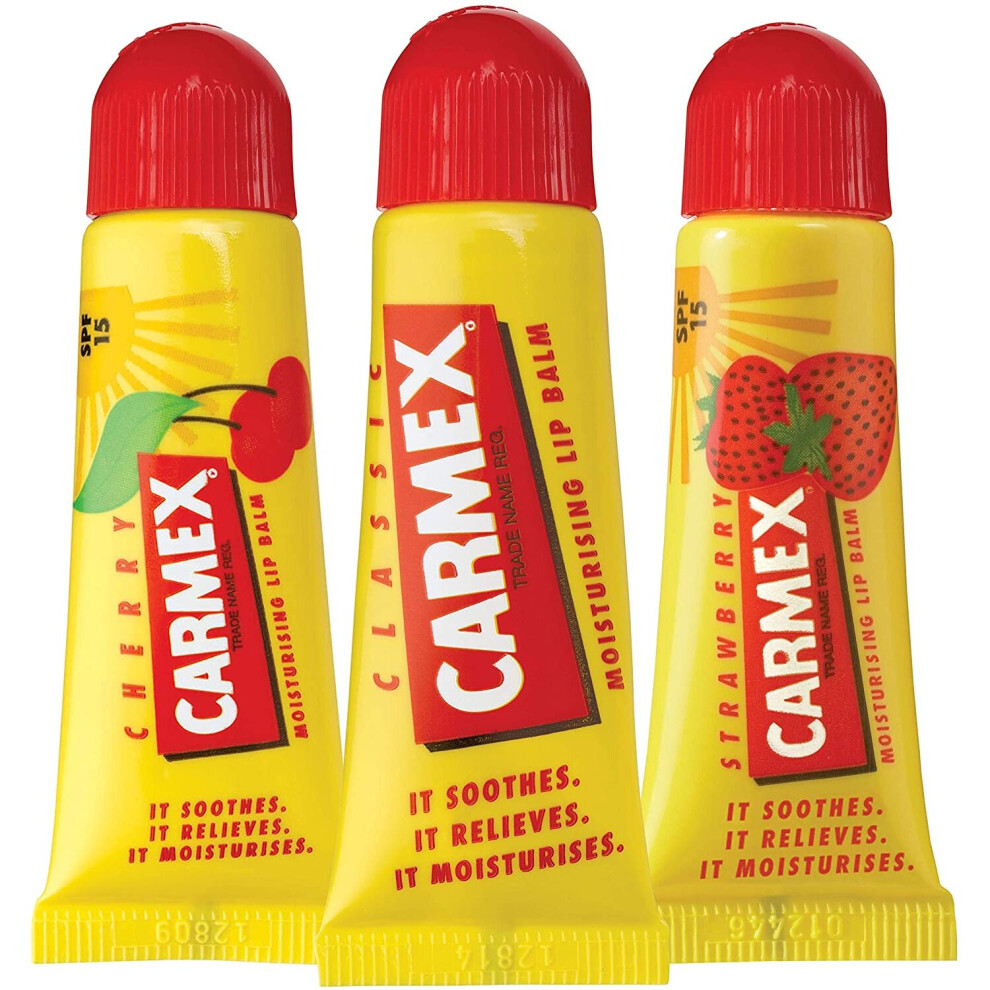 Carmex Lip Balm Tube Pack of 3 (Classic, Cherry & Strawberry)