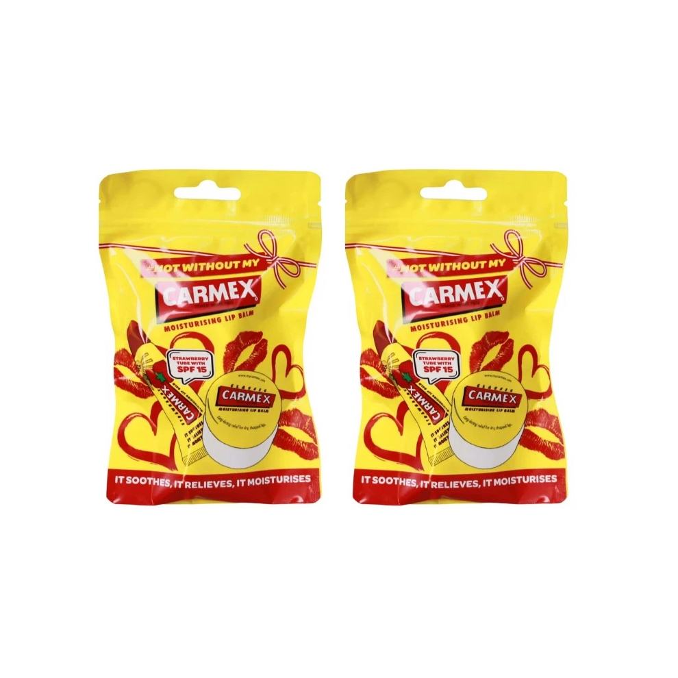 2 x CARMEX POUCH SPF15 (7.5G BALM POT & 10G CLASSIC TUBE STRAWBERRY) Per Pouch