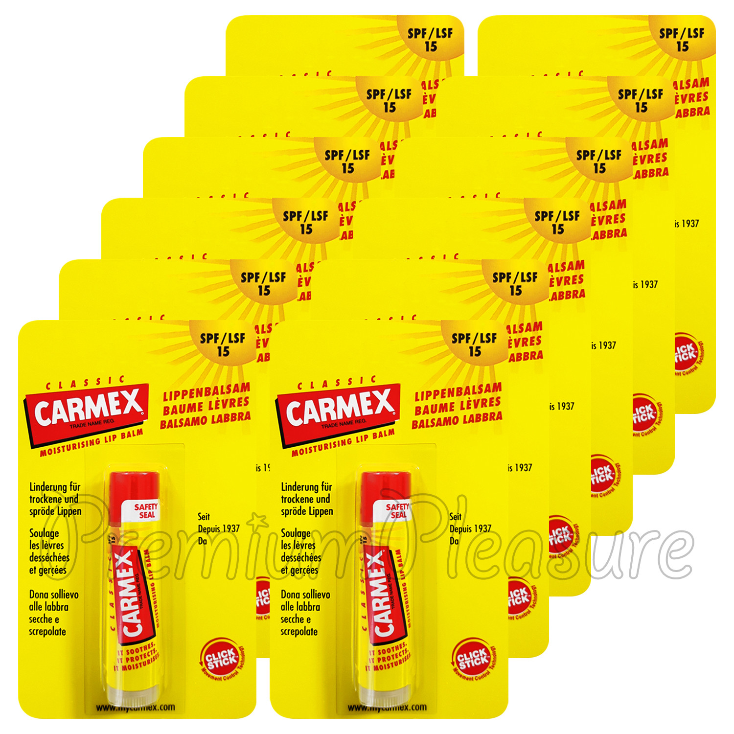 12 x Carmex Classic Click Stick Lip balm SPF15 Moisturising 4.9ml/0.16oz USA