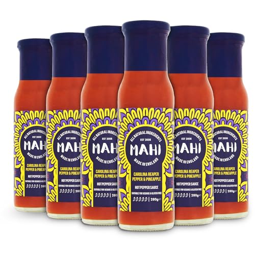 MAHI Hot Chilli Sauce | Vegan & Gluten Free | No Artificial Colours or Flavours (280 g (Pack of 6), Carolina Reaper & Pineapple)