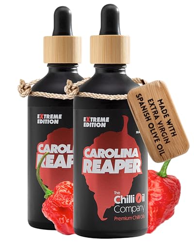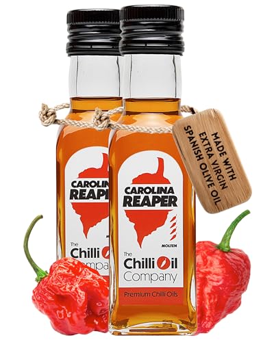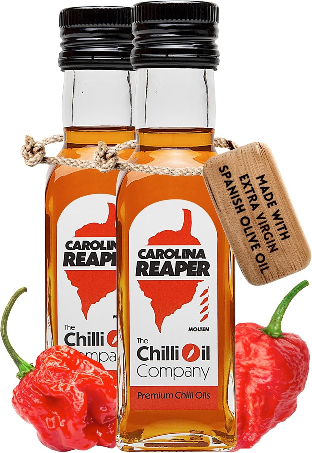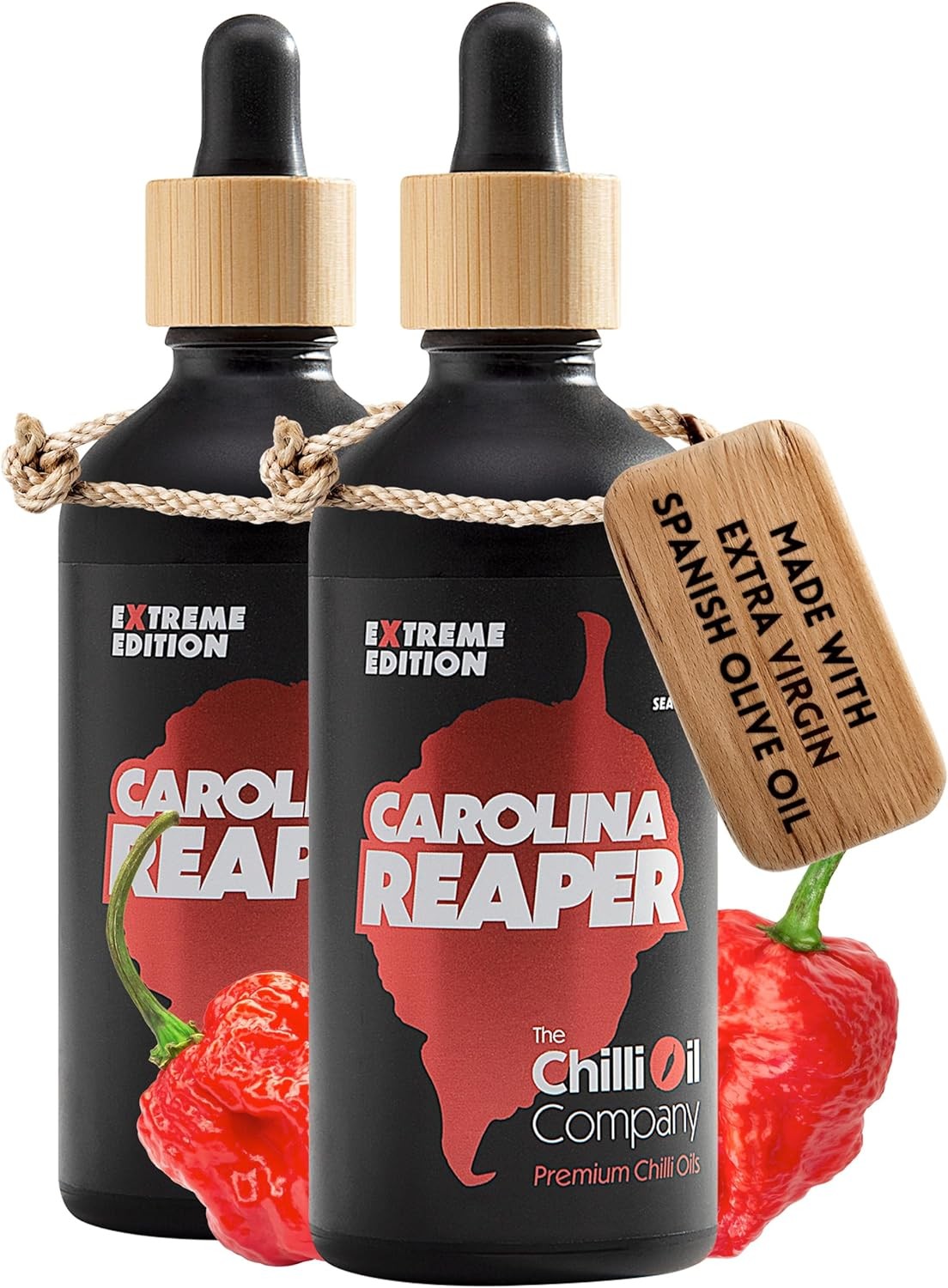 Carolina Reaper Chilli, 125ml - Extra Hot Sauce with Spanish Extra Virgin Olive Oil - No Additive Spicy Seasoning for Cooking by The Chilli Oil Company, 2-Pack