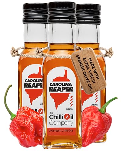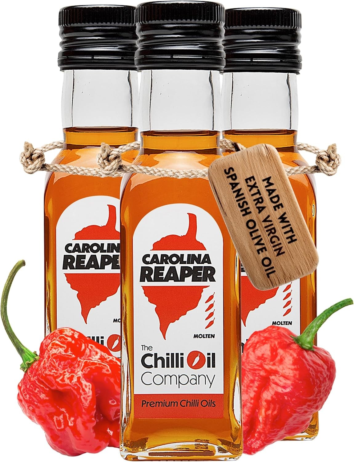 Carolina Reaper Chilli, 125ml - Extra Hot Sauce with Spanish Extra Virgin Olive Oil - No Additive Spicy Seasoning for Cooking by The Chilli Oil Company, 3-Pack