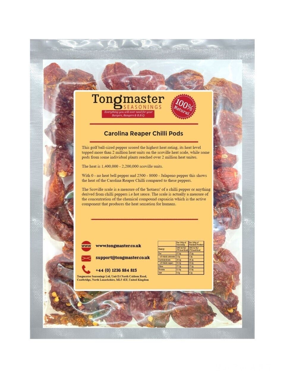 Whole Dried Carolina Reaper Chilli Pods (Worlds Hottest Chilli) - 50g