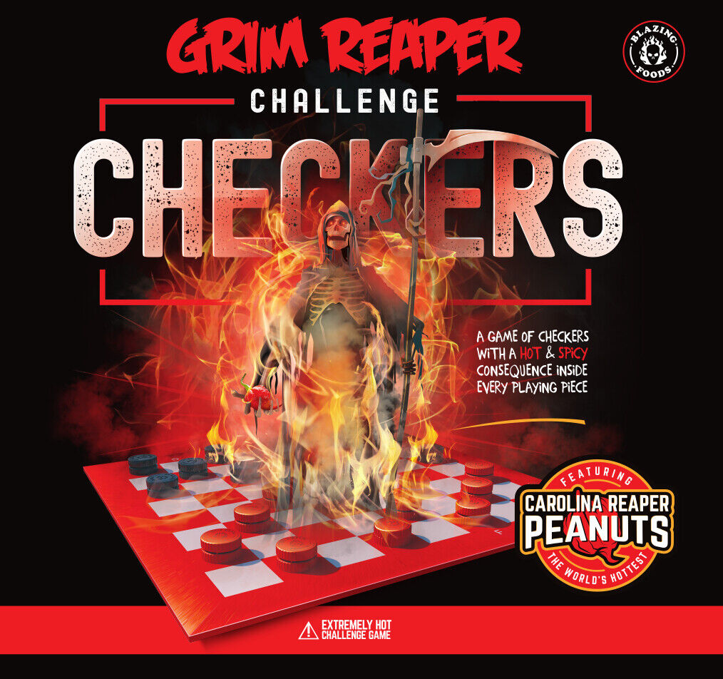 Grim Reaper Challenge Checkers Board Game Worlds Hottest Carolina Reaper Peanuts