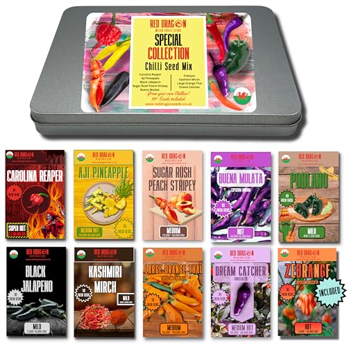 Chilli Seed Kit Special Collection - Grow Your Own Chilli Peppers, Includes Worlds Hottest Carolina Reaper, 10 Incredible Chilli Pepper Seeds Varieties, Seed Gift Set Gardening Gifts for Women & Men