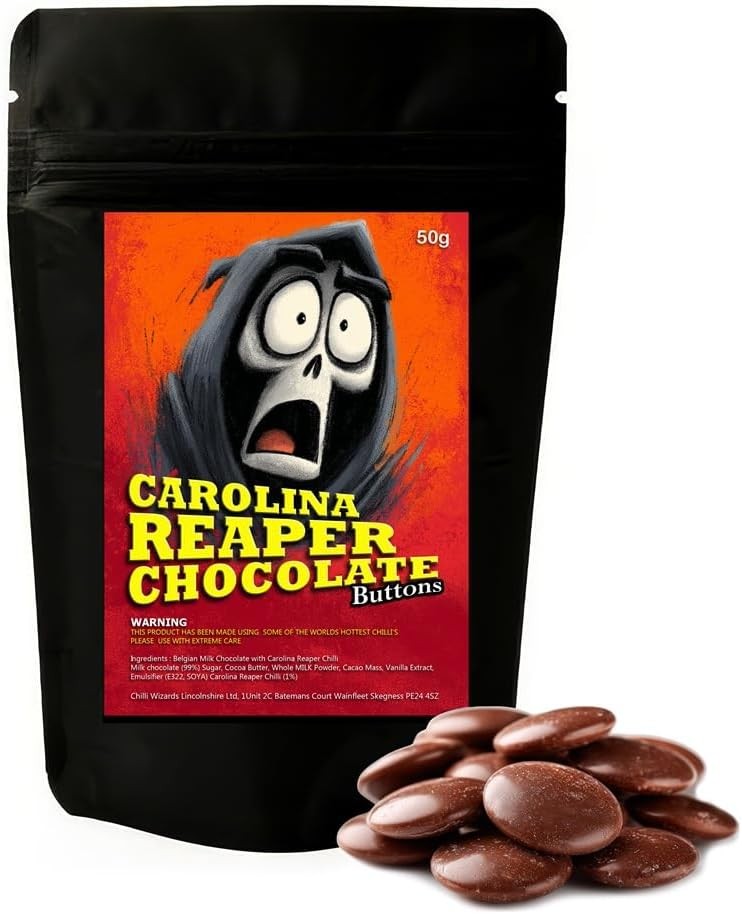Carolina Reaper Milk Chocolate Buttons 50g – Fiery Hot Chilli Chocolate Snack