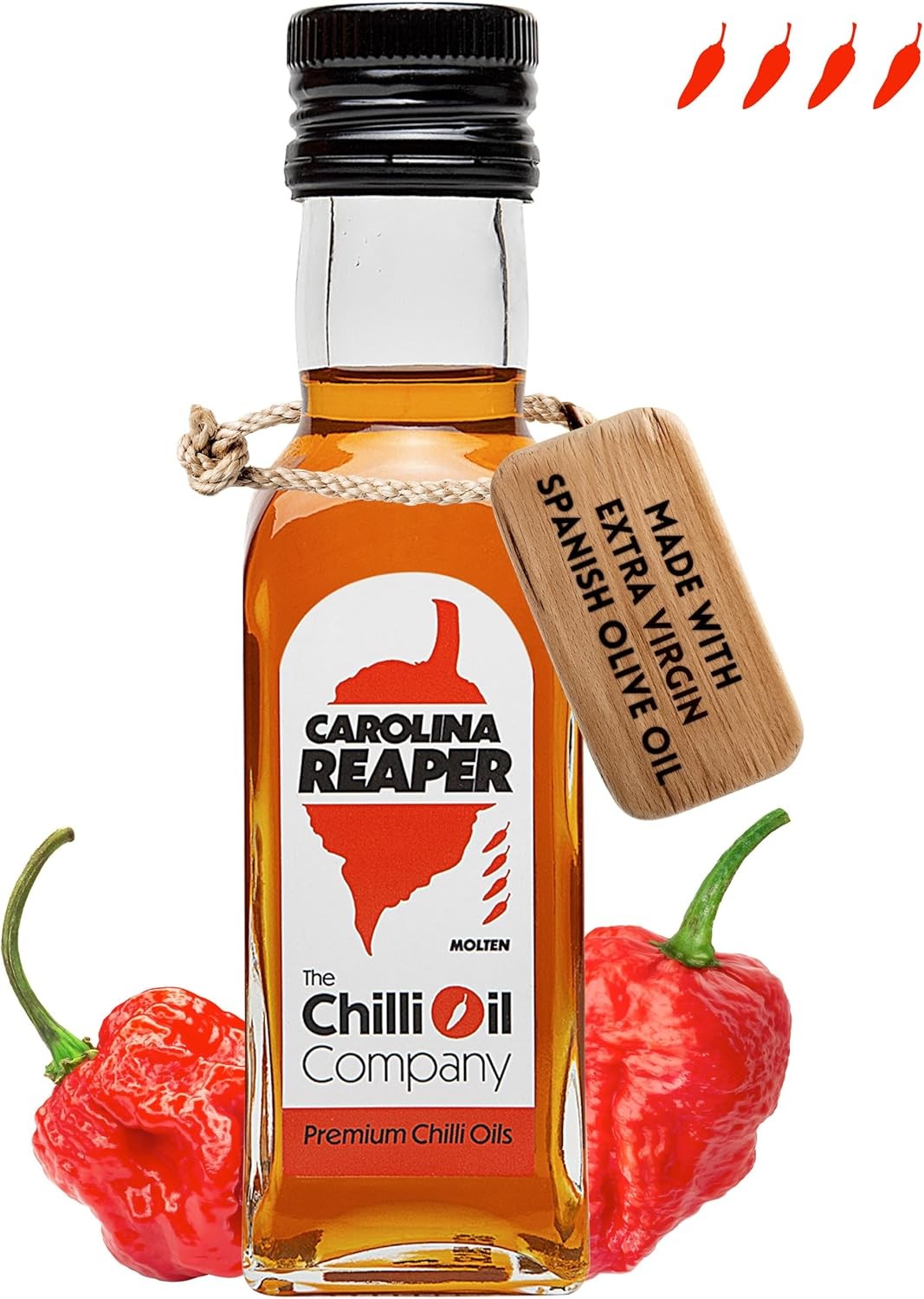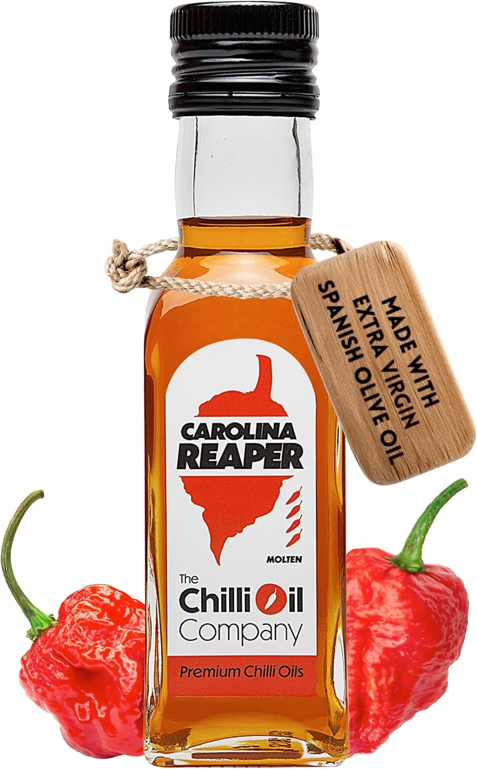 Carolina Reaper Chilli, 125ml - Extra Hot Sauce with Spanish Extra Virgin Olive Oil - No Additive Spicy Seasoning for Cooking by The Chilli Oil Company