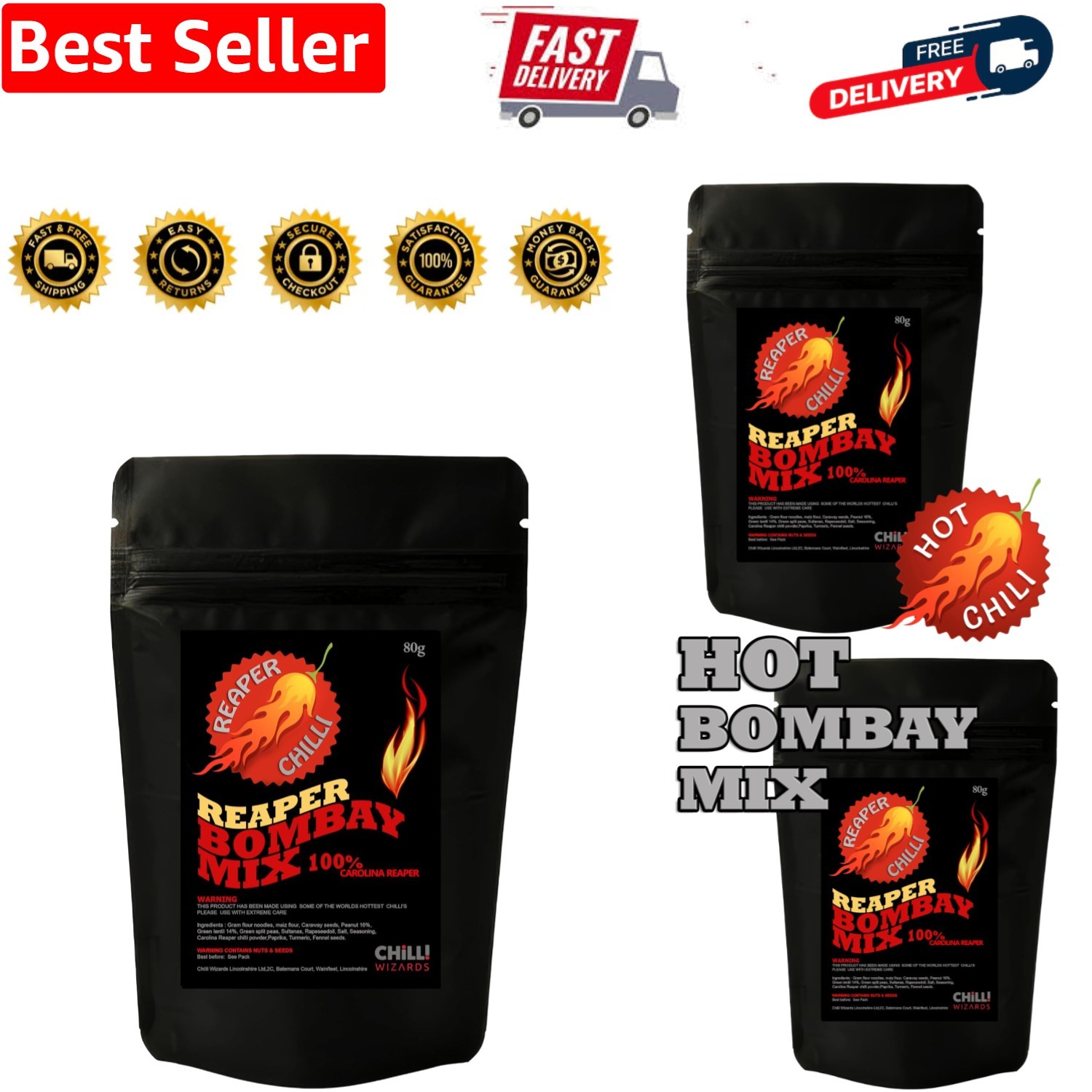 Carolina Reaper - Insane Bombay Mix. Too Hot To Handle Chilli Snack 80g