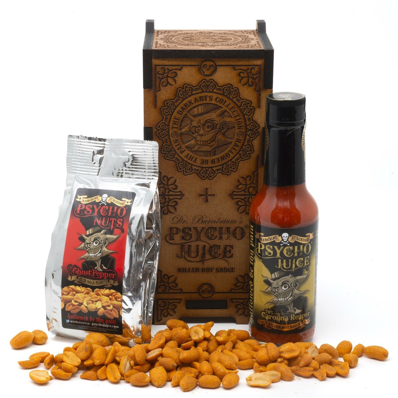 Psycho Juice Dark Arts Gift Set 70% Carolina Reaper Chilli Sauce & Spicy Peanuts