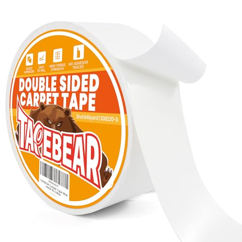 TAPEBEAR Heavy-Duty Double Side Carpet Tape, Removable Carpet Tape for Area Rugs, Multipurpose Gripper Non Slip Tape for Wood Floor and Outdoor Rugs, Residue-Free, 2inch X 40yard(50mm x 36m)