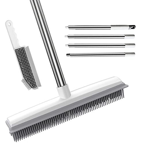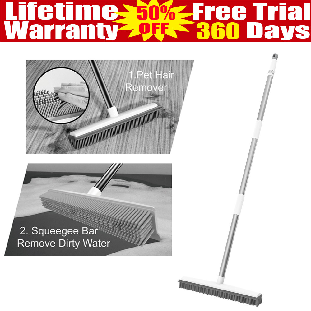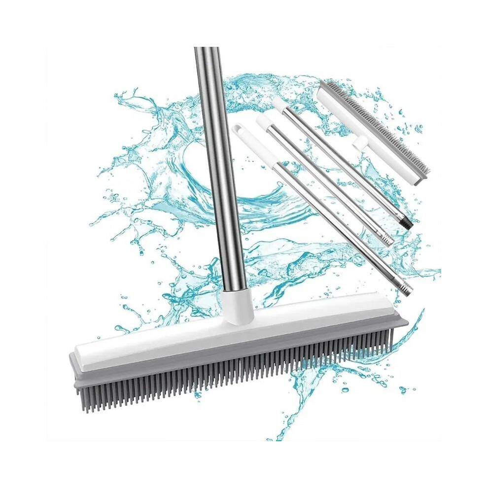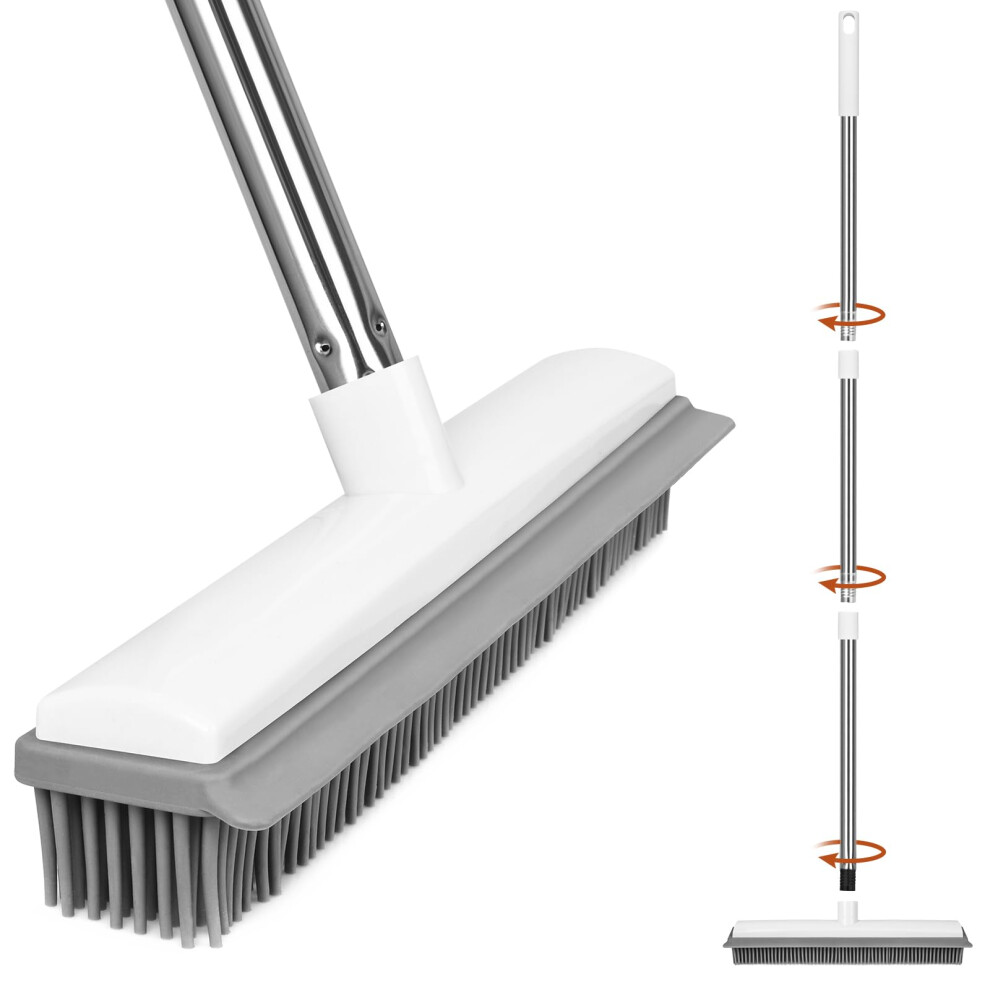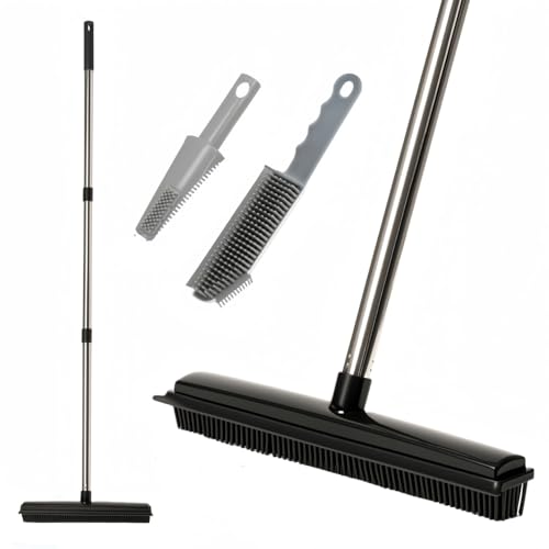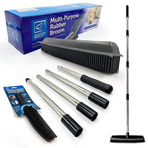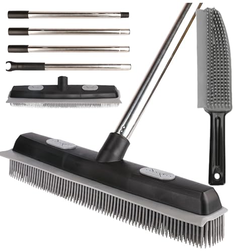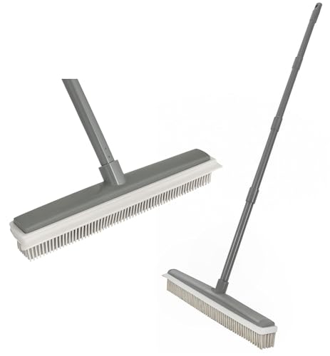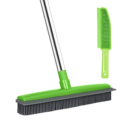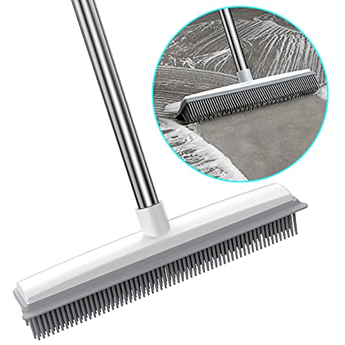 Rubber Broom Carpet & Floor Sweep with Squeegee, Removes Pet Hair on Rugs