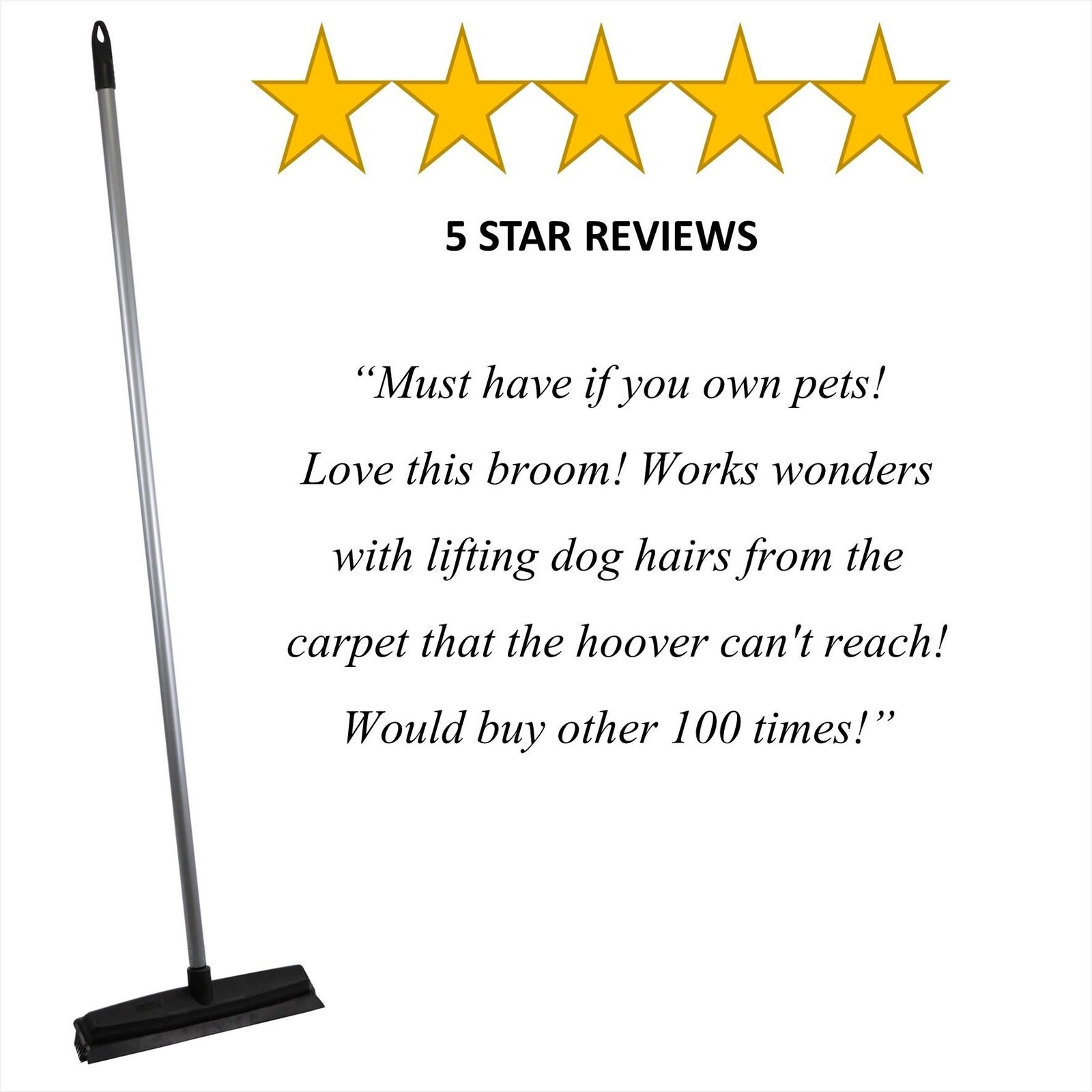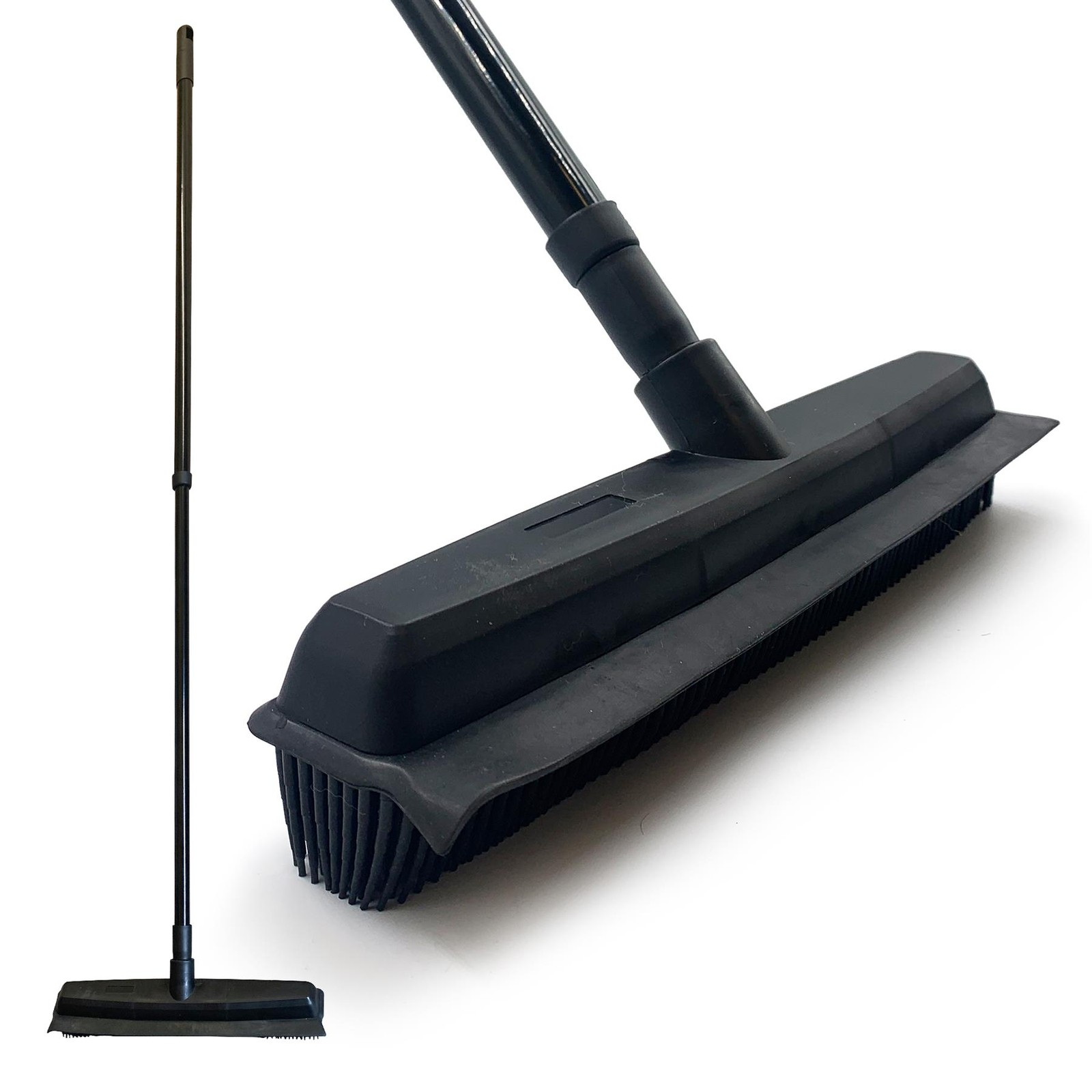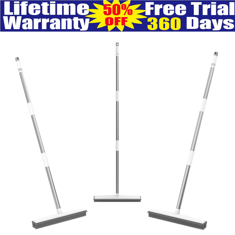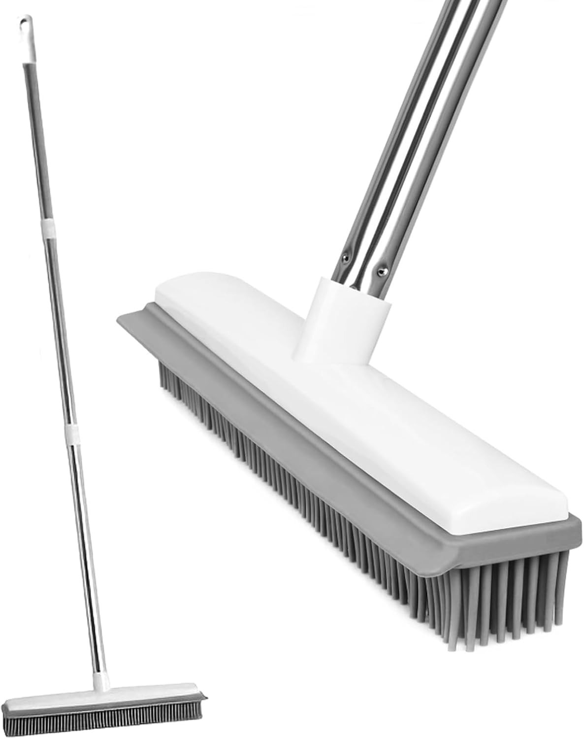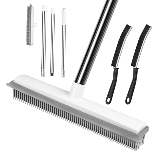 Rubber Broom Carpet & Floor Sweep with Squeegee, Removes Pet Hair on Rugs