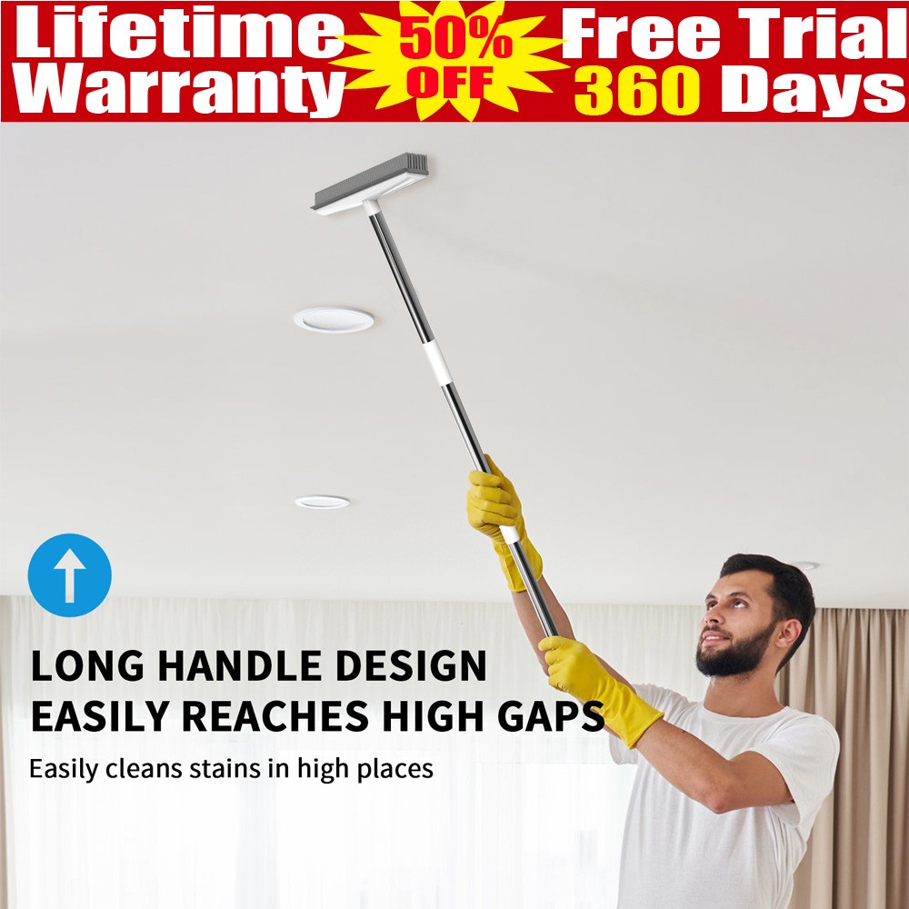 Silicone Floor Squeegee for Shower - Long Handle Water Wiper Scraper Mop Dust Clean Rubber Magic Broom Sweeping Water,Pet Hair Remover for Carpet,Wet Room,Window,Garage,Washroom