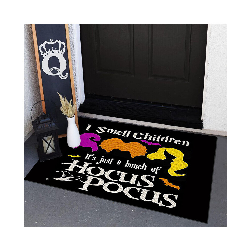 (D) Halloween Floor Mat Decoration Halloween Witch Broom Carpet Decoration Home Decoration