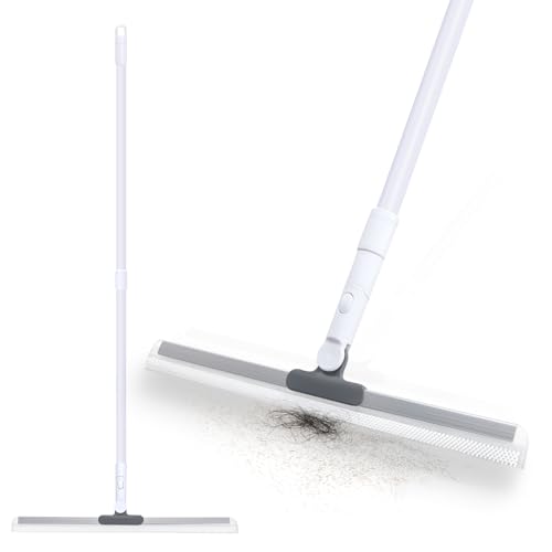 Rubber Broom, Carpet Rubber Brush with Squeegee, Adjustable Long Handle Floor S