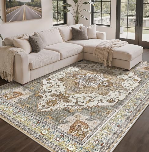 GENIMO Washable Rug 160x230cm - Large No Pile Non-Slip Carpet,Durable Easy Clean Bohemian Rug for Living Room, Dining Room, Home Office,Brick