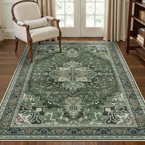 GENIMO Rugs Living Room160x230cm – Dark Green Large Washable Rug for Living Room,Home Office & Dining Room,Non-Slip Short Pile Soft Carpet,Easy Clean & Durable