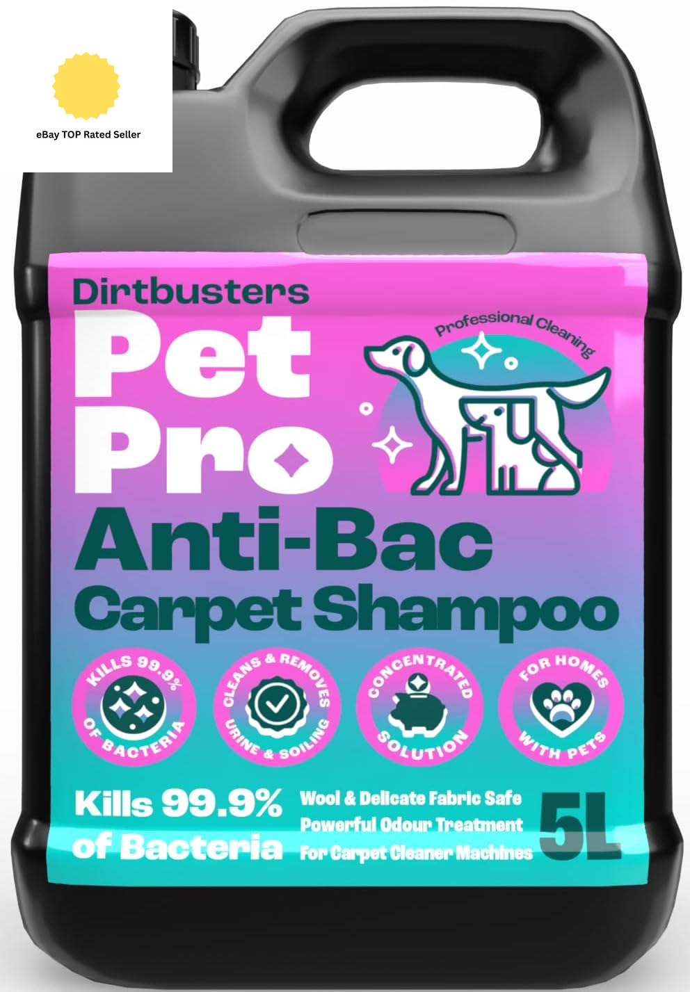 Dirtbusters Pet Pro Antibacterial Carpet Cleaner Shampoo Solution (5L) Kills 99.99% Of Bacteria, Powerful Cleaning To Remove Soiling & Neutralise Pet Odour, Urine & Stains, Wool Safe