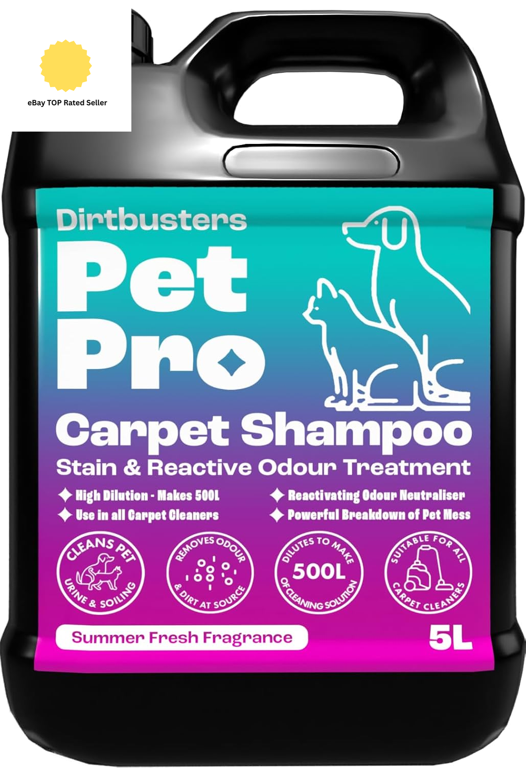 Dirtbusters Pet Pro Carpet Cleaner Shampoo Solution (5L) Deep Cleaning Stain Remover With Odour Neutraliser To Remove Dog & Cat Urine, Makes 500L Of Carpet Cleaner Solution