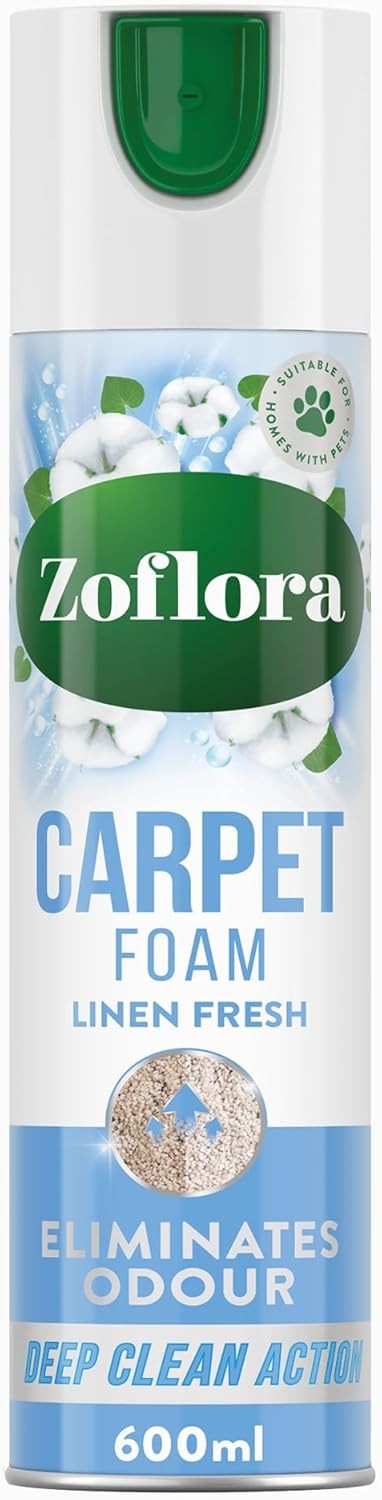 Zoflora Linen Fresh Carpet Freshener & Care Foam, Carpet Cleaner,Stain Remover Foam for Carpets and Upholstery, Neutralises Odours, Deep Cleans, Pet Safe, 1x 600 ml