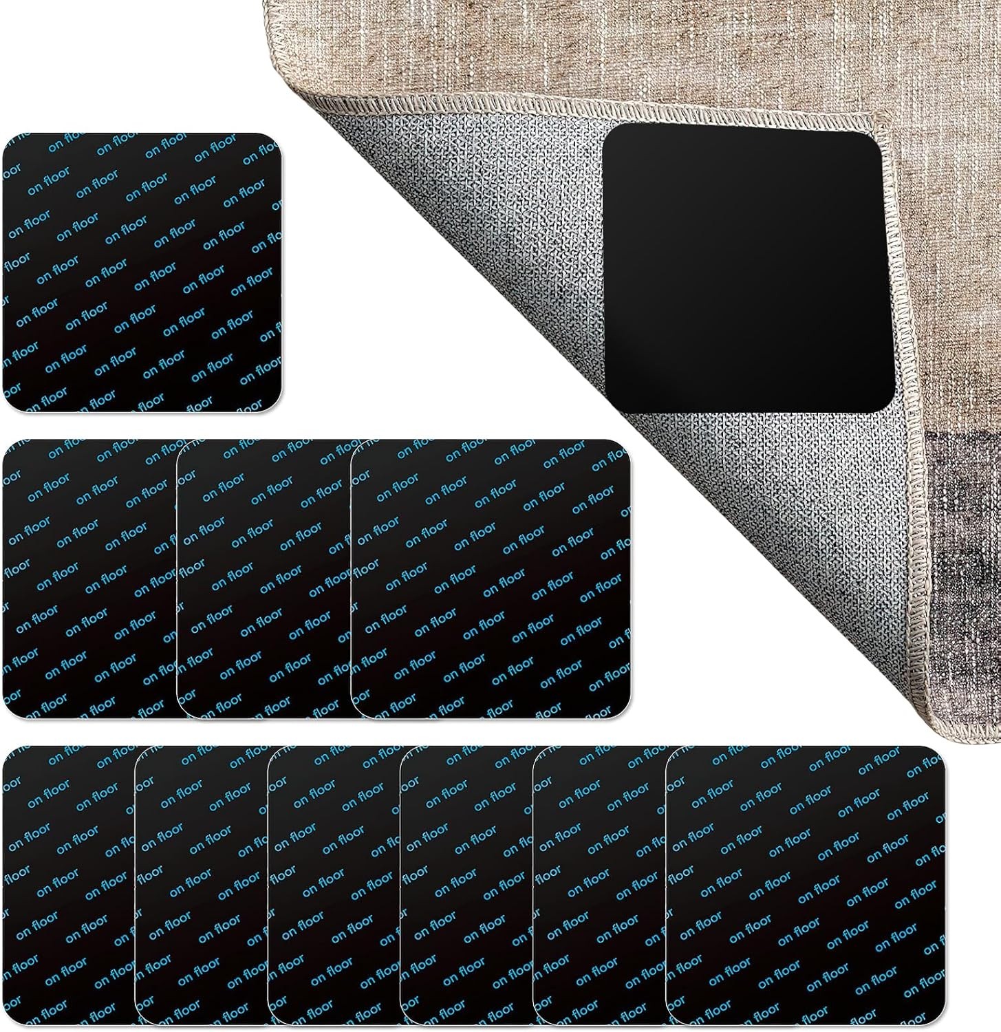 10 Pieces Carpet Stickers for Rugs,Square Washable Carpet Grippers,Reusable Rug