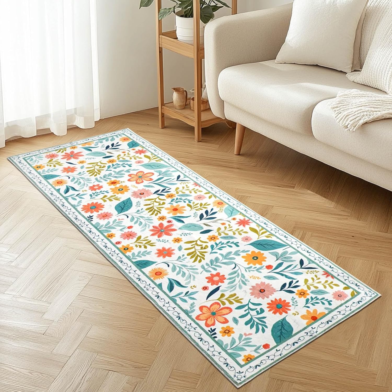 Avezano Floral Carpet Runner for Hallway Non Slip 60x182cm Machine Washable Low