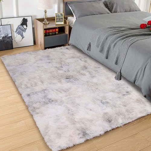 Hafaa Fluffy Shaggy Rugs Living Room Tie-Dye Light Grey 80x150 cm, Non-Slip Carpet Runner Rugs for Hallway, Soft Thick Pile Bedside Rug for Kids Bedroom, Nursery - Non-Shedding