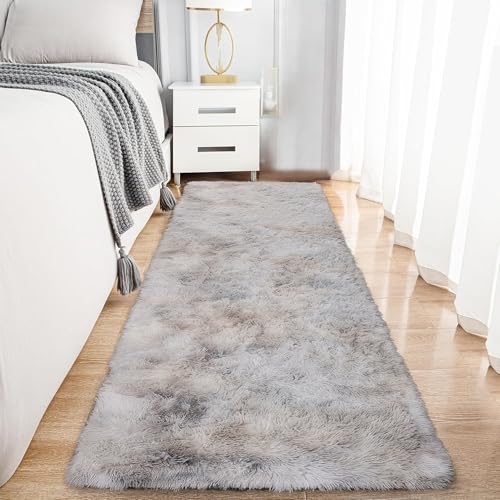Hafaa Fluffy Shaggy Rugs Living Room Grey 60x220 cm, Long Non-Slip Carpet Runner Rugs for Hallway, Soft Thick Pile Bedside Rug for Kids Bedroom, Nursery Room Non-Shedding
