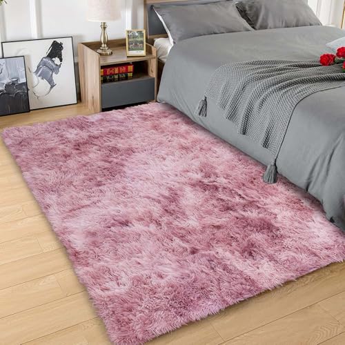 Hafaa Fluffy Shaggy Rugs Living Room Tie-Dye Pink Lilac 80x150 cm, Non-Slip Carpet Runner Rugs for Hallway, Soft Thick Pile Bedside Rug for Kids Bedroom, Nursery - Non-Shedding