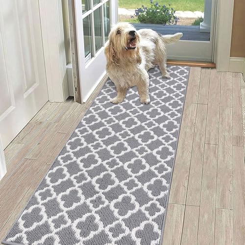 SHACOS Carpet Runner for Hallway Grey Non Slip 60x180cm Machine Washable Kitchen Laundry Room Area Rug Runner Geometric Trellis Floor Door Mat Runner for Hallway Entryway Kitchen Laundry Room
