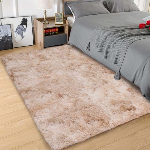 Hafaa Fluffy Shaggy Rugs Living Room Tie-Dye Beige 80x150 cm, Non-Slip Carpet Runner Rugs for Hallway, Soft Thick Pile Bedside Rug for Kids Bedroom, Nursery - Non-Shedding