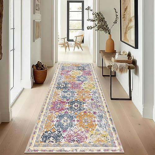 Enyhom Rugs for Hallway 60 x 180cm Non Slip Super Soft Boho Carpet Runner Extra Long Hallway Runner Machine Washable Kitchen Rug for Living Room Entryway Laundry Room Balcony, Colorful