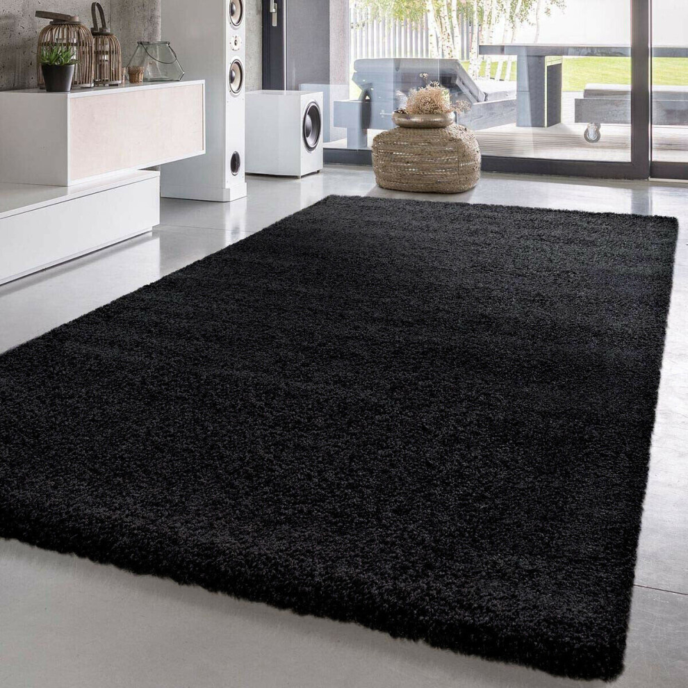 (Black , 120cm x 170cm) Soft Shaggy VERONA Rug Living Room Bedroom Carpet Hallway Runner Non Shed Pile