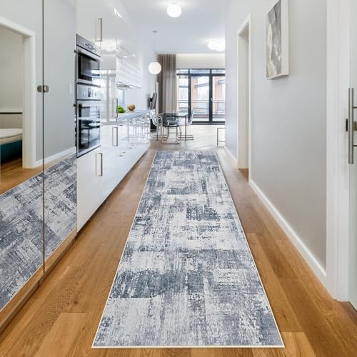 Aolawco Hallway Runner Rug, 65x240cm Non-Slip Carpet Runners, Washable Entrance Carpet Kitchen Runner Long Hallway for Living Room/Entryway/Bathroom/Laundry Room Carpet Rug(Blue)