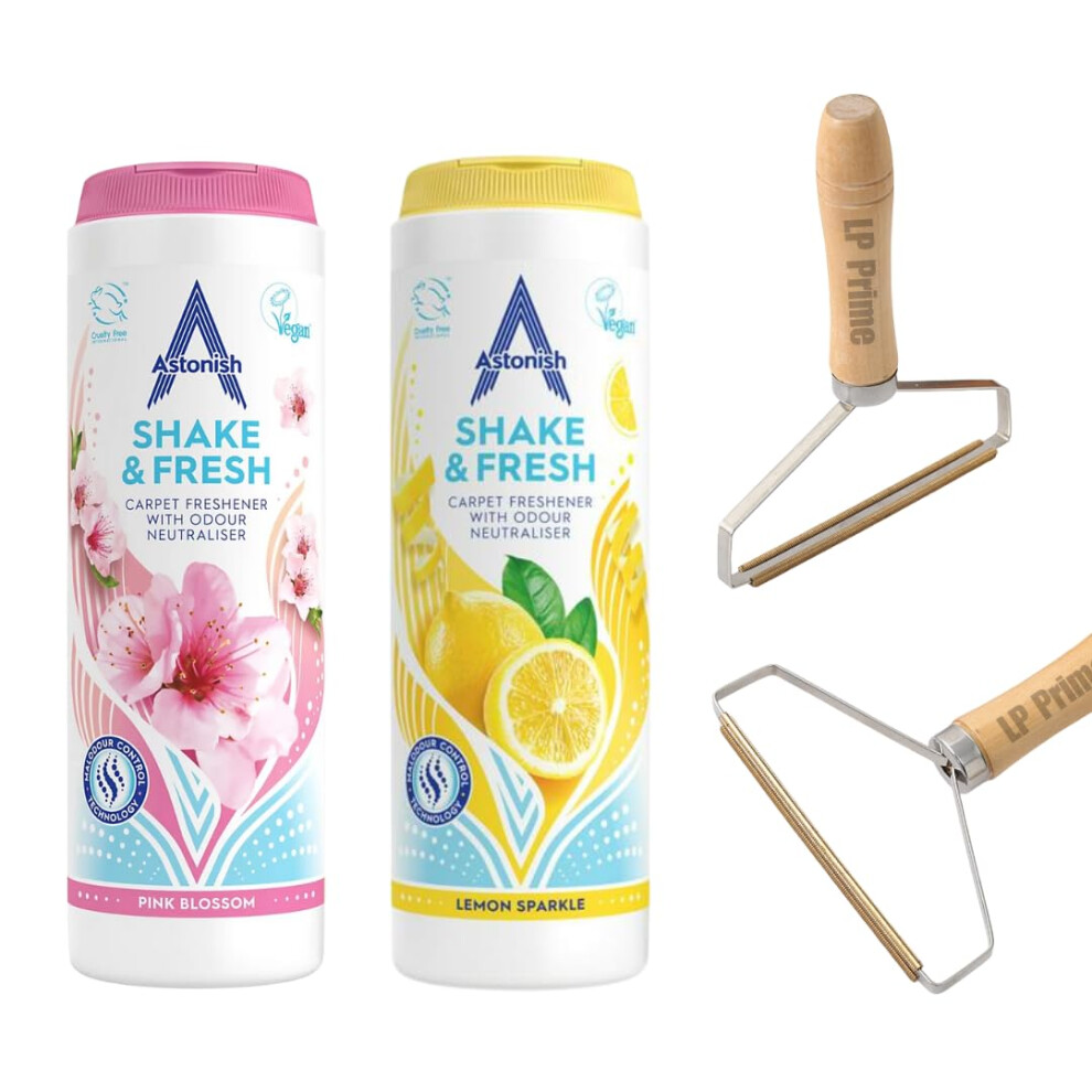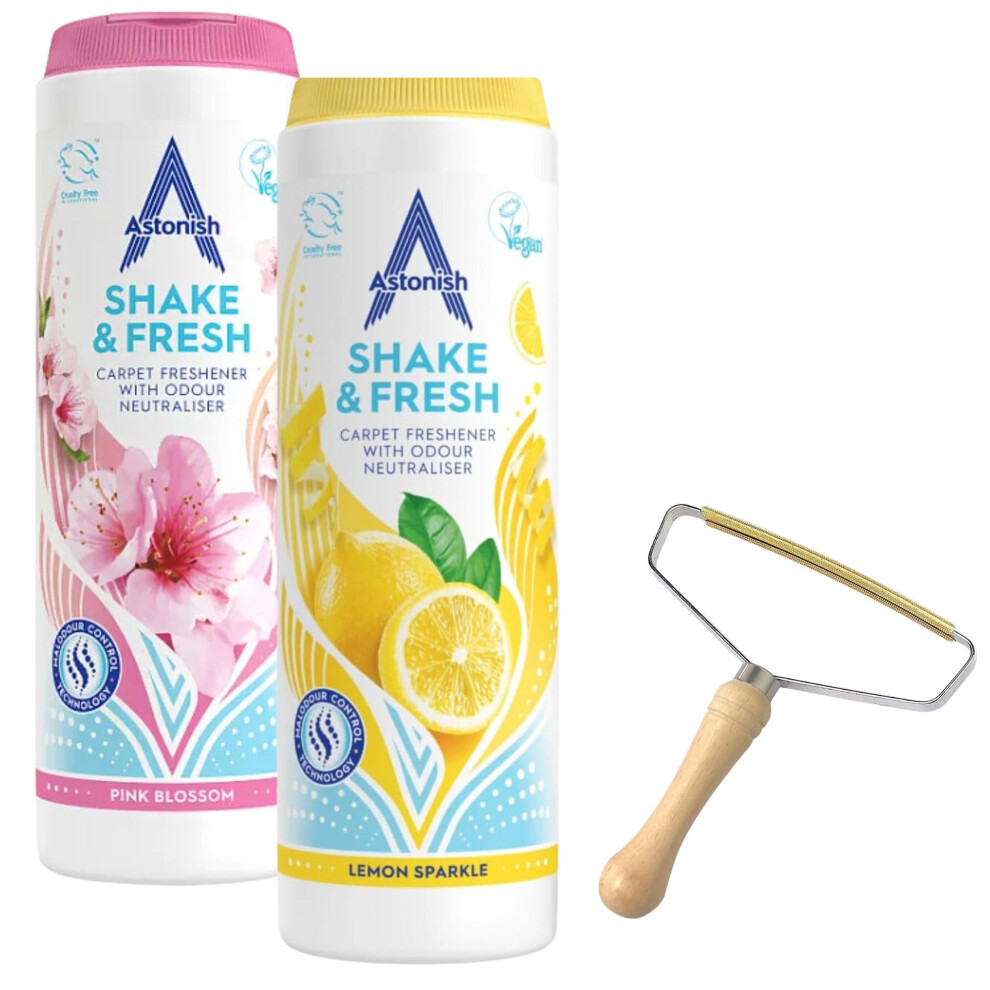 Shake and Vac Carpet Cleaner Powder Bundle | Carpet Freshener Powder with Astonish Cleaning Products | Includes Lint Remover, Lemon Sparkle, and Pink