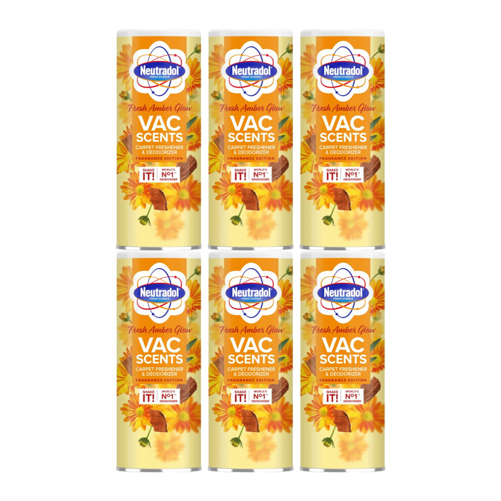Neutradol Carpet Deodoriser, Vac Scents, Odour Neutraliser Powder for Carpets & Rugs, Fresh Amber Glow, Multipack of 6 x 350g