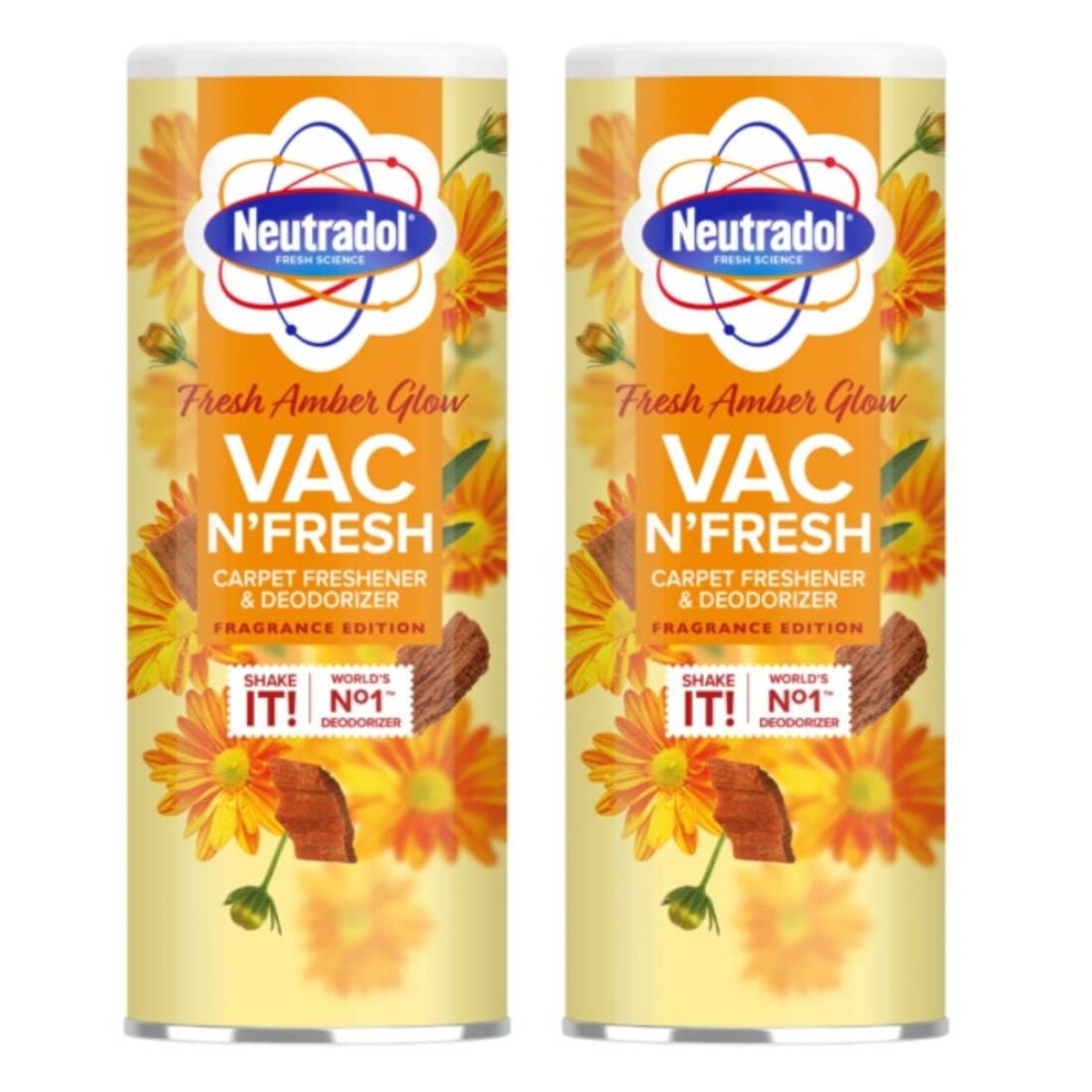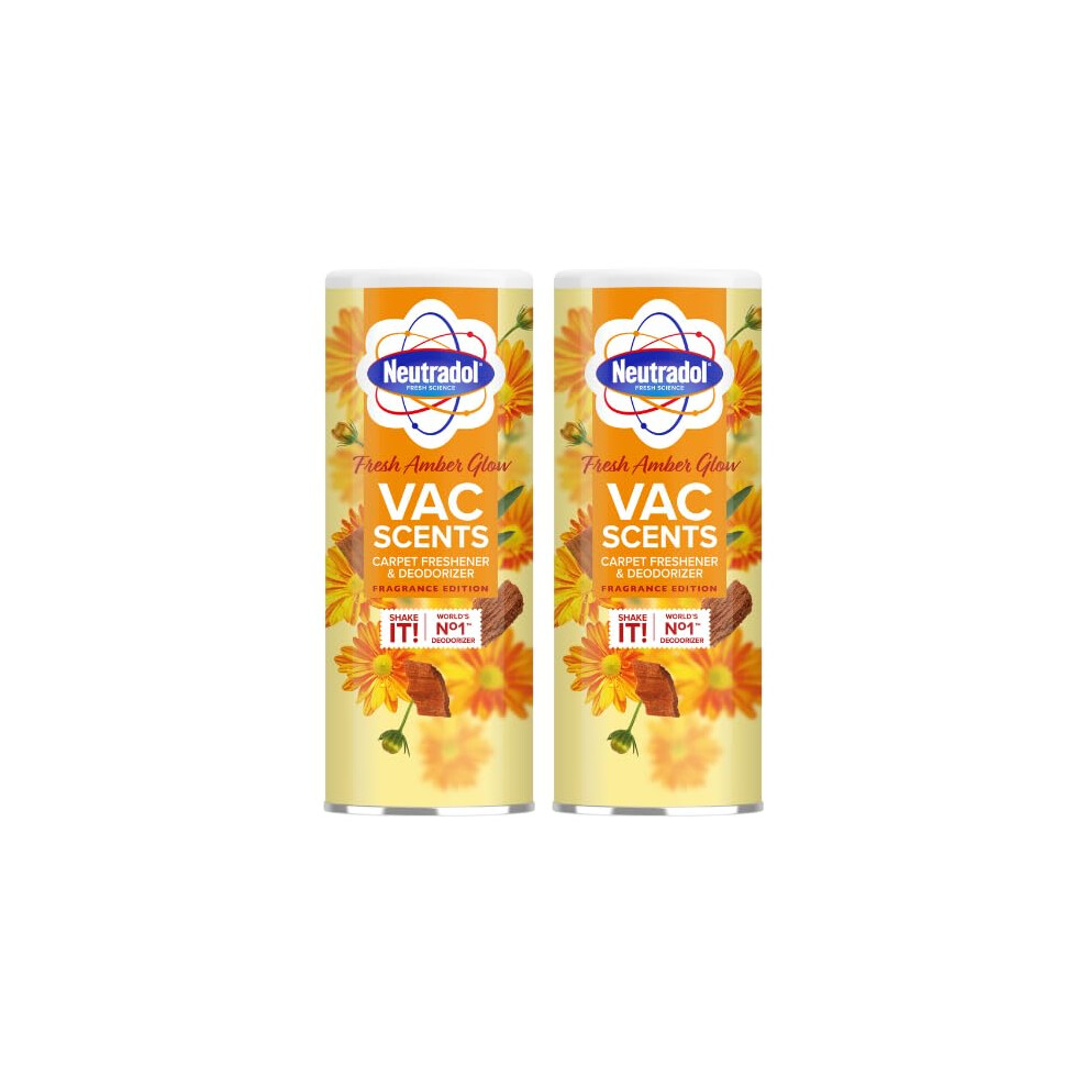 Neutradol Carpet Deodoriser, Vac Scents, Odour Neutraliser Powder for Carpets & Rugs, Fresh Amber Glow, Multipack of 2 x 350g