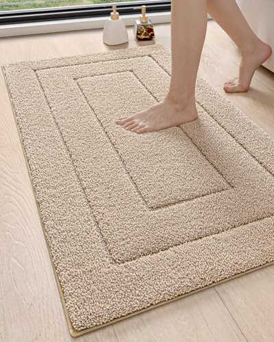 DEXI Bathroom Rug Mat, Extra Soft Absorbent Premium Bath Rug, Non-Slip Comfortable Bath Mat, Carpet for Tub, Shower, Bath Room, Machine Wash Dry, 24"x36", Beige