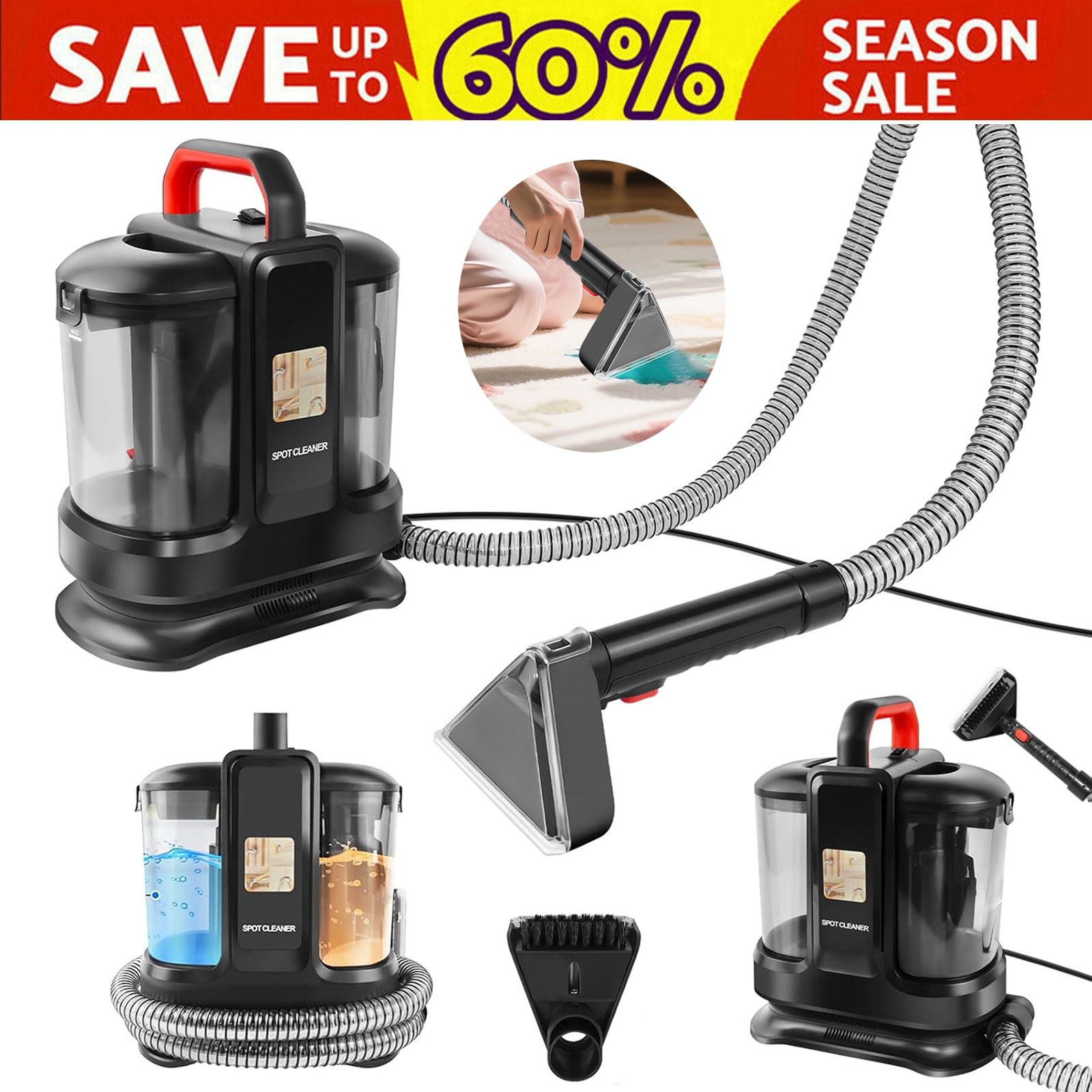Spot Cleaner Portable Professional Carpet Upholstery Spot Washer Strong Suction