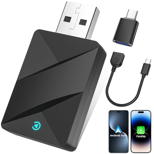Wireless Carplay Adapter for Apple and Android Auto, Convert Wired to Wireless Carplay Vehicle, Portable Fast Mini USB/Type-C iPhone and Android Dongle, Easy Plug & Play, Black