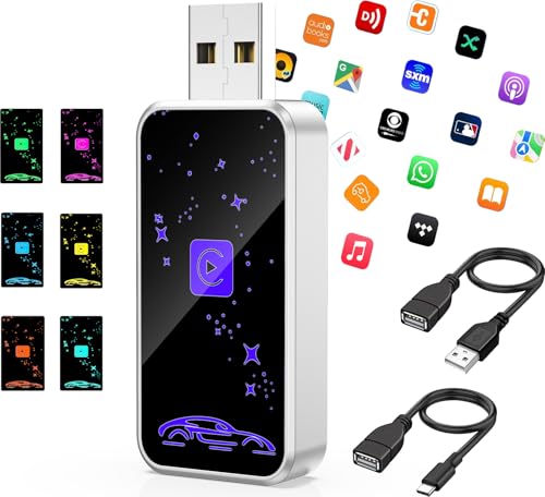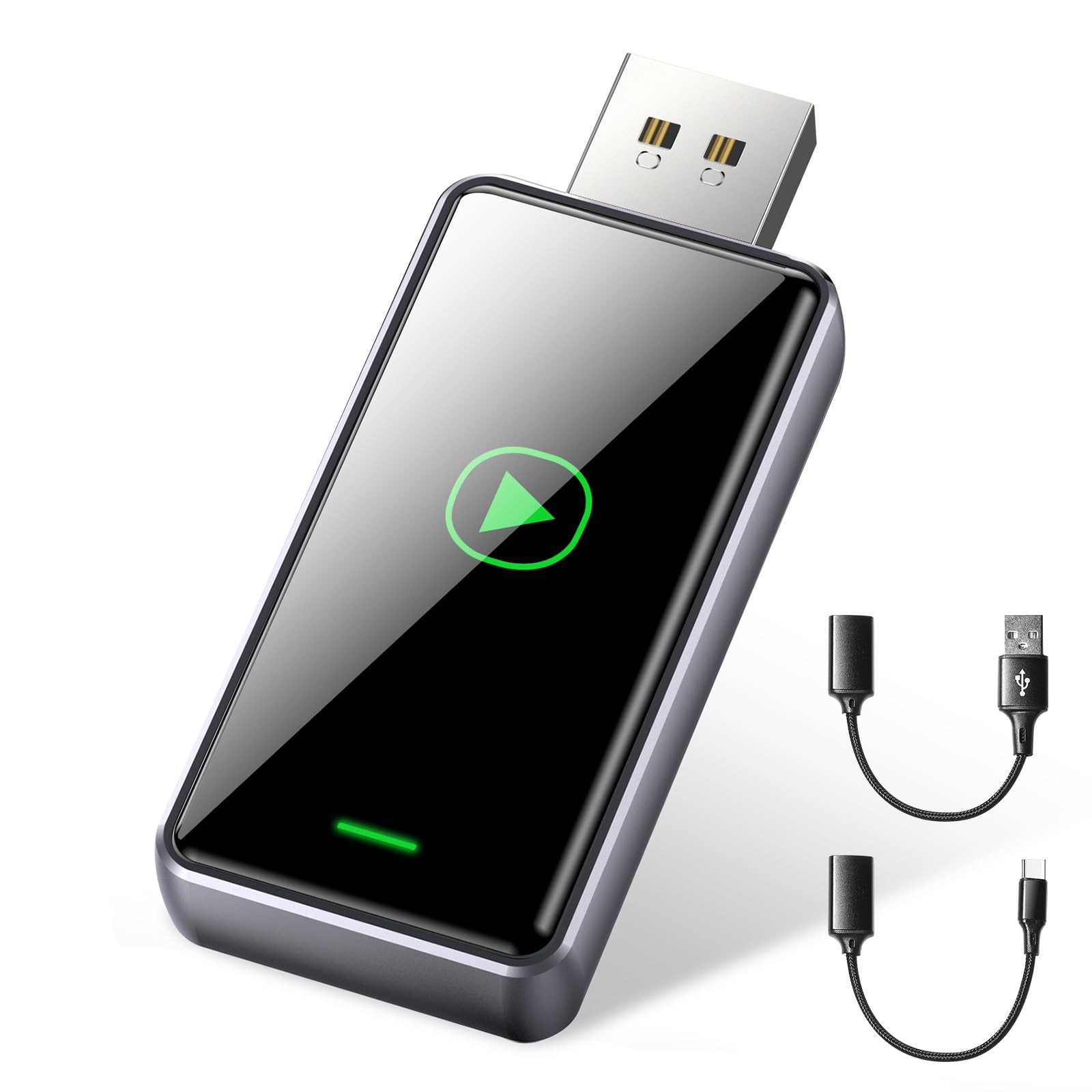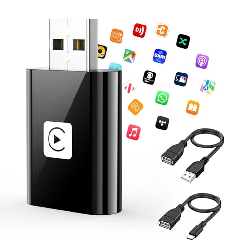 Wireless CarPlay Adapter for iPhone, 3X Faster Auto Connection, No Delay, Plug & Play with Bluetooth 4 and WiFi 6, Mini Dongle, Includes USB and USB-C Extension Cable, Conversion