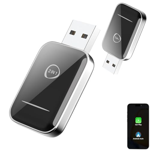 2025 Upgrade Wireless Carplay Adapter UK - 2-in-1 Plug and Play USB to Wireless Car Adapter for iPhone & Android, Seamless Bluetooth Connectivity, Auto Link Car Accessories