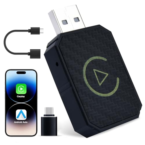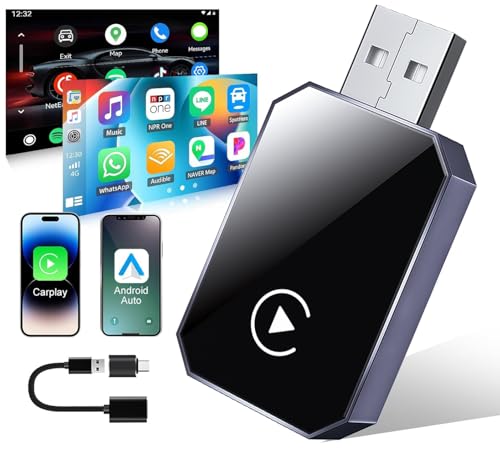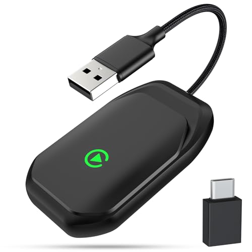 Wireless Carplay Adapter UK for iOS 10+/Android 11+,Mini Android Auto Wireless Adapter With USB-C/USB-A Converter,Upgrade from Wired to Wire-less,Fast Stable Connection, Plug & Play