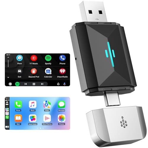 2 in 1 Adapter For Carplay, USB Wireless Adapter Dongle Compatible with Over 800 Models, Supports 11.0 with Compact Design and Stable Connection