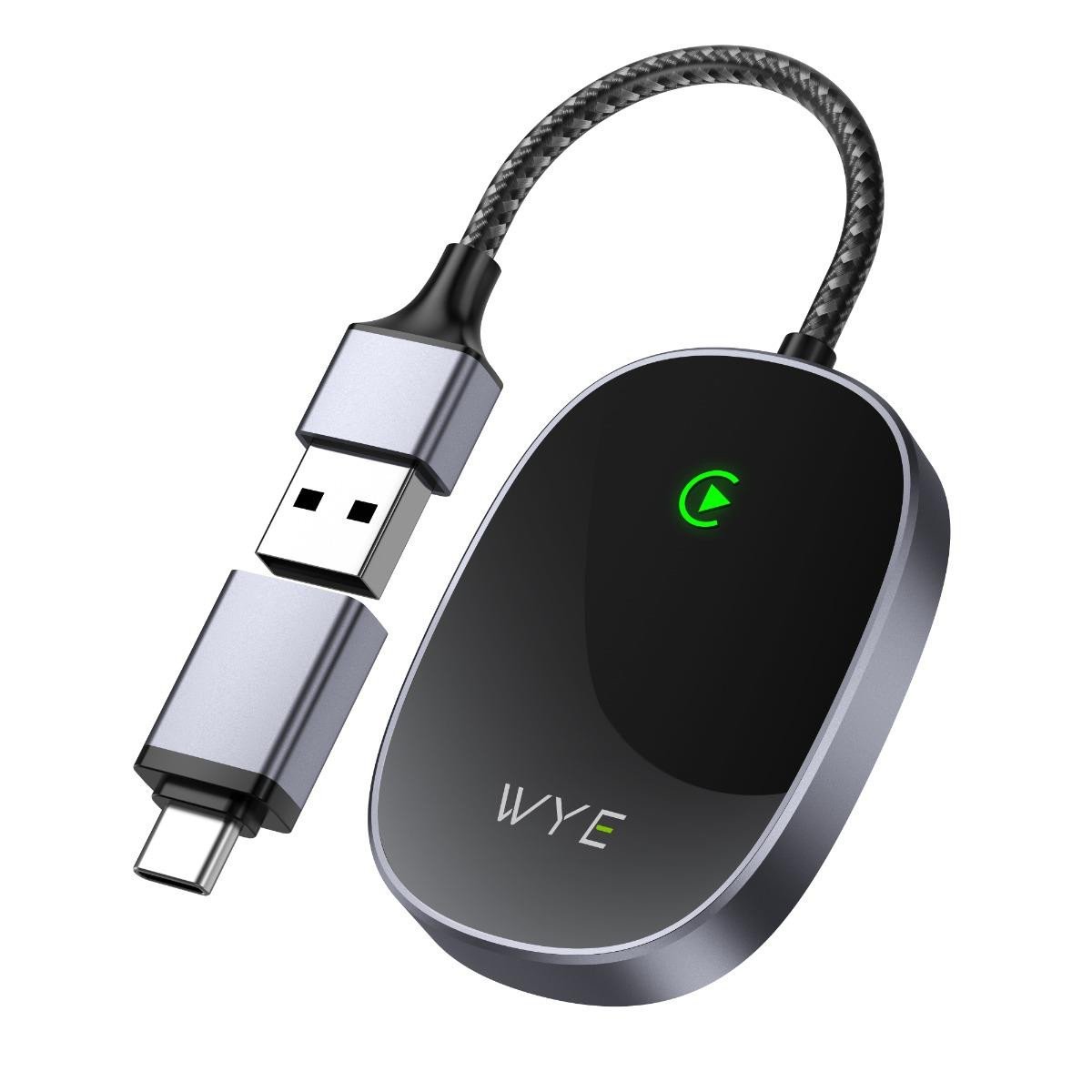 Wireless CarPlay Adapter Black Aluminum Alloy Braided Wire Universal USB-C Hub