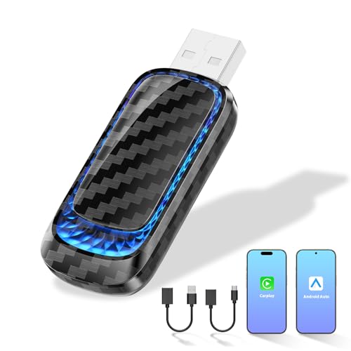Qutsvosh Wireless CarPlay Adapter Carbon Fiber USB Wireless Android Auto Dongle Mini Ai Box Wired to Wireles Android Auto Adapter