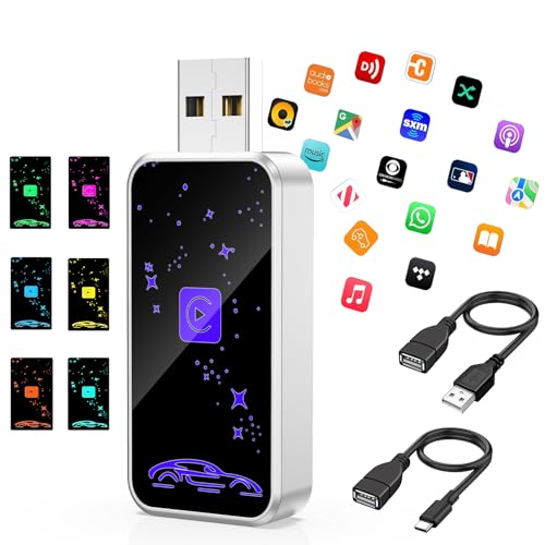 Wireless CarPlay Adapter & Android Auto Wireless Adapter - 2 in 1 Mini Adapter for Factory Wired CarPlay and Android Auto Cars, Ultra Low Delay, Multi-Color Ambient Light, Extension Cable USB C/A